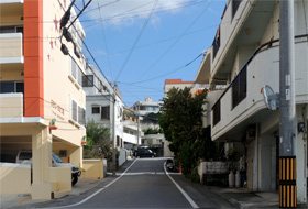 事務所のある屋富祖の光景(6年ほど前に撮影)。 古くからの商店や住宅が残っていた屋富祖界隈も、ここ数年で少しずつ変わってきています。 この写真も、だんだん過去の懐かしい光景となりつつあります。